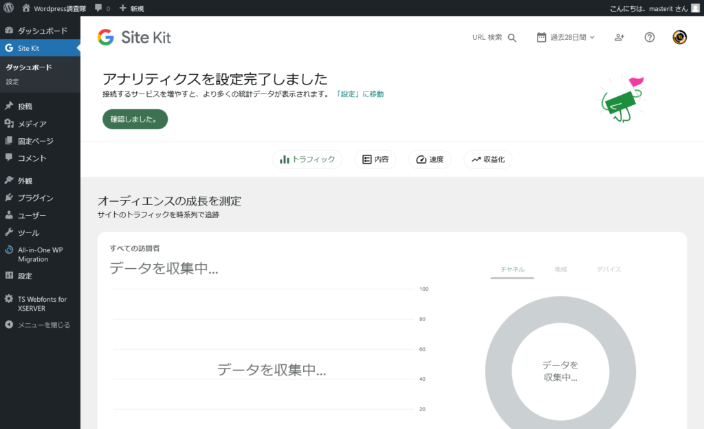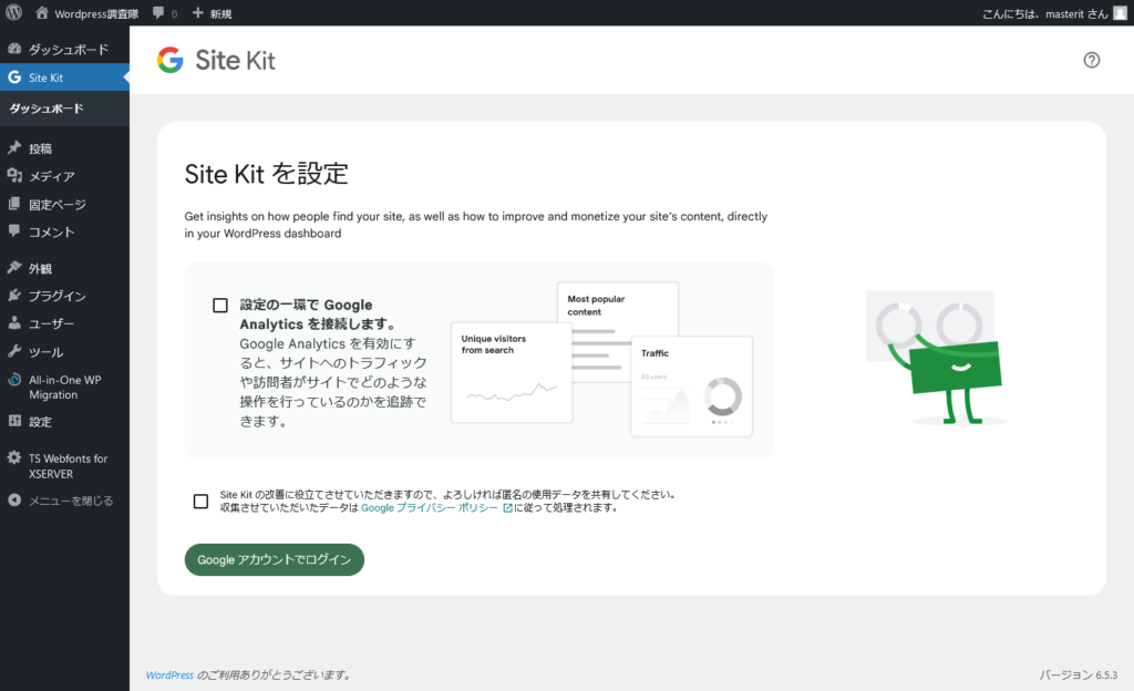 『Site Kit プラグイン』を使って、Googleアナリティクスの設定を行うと