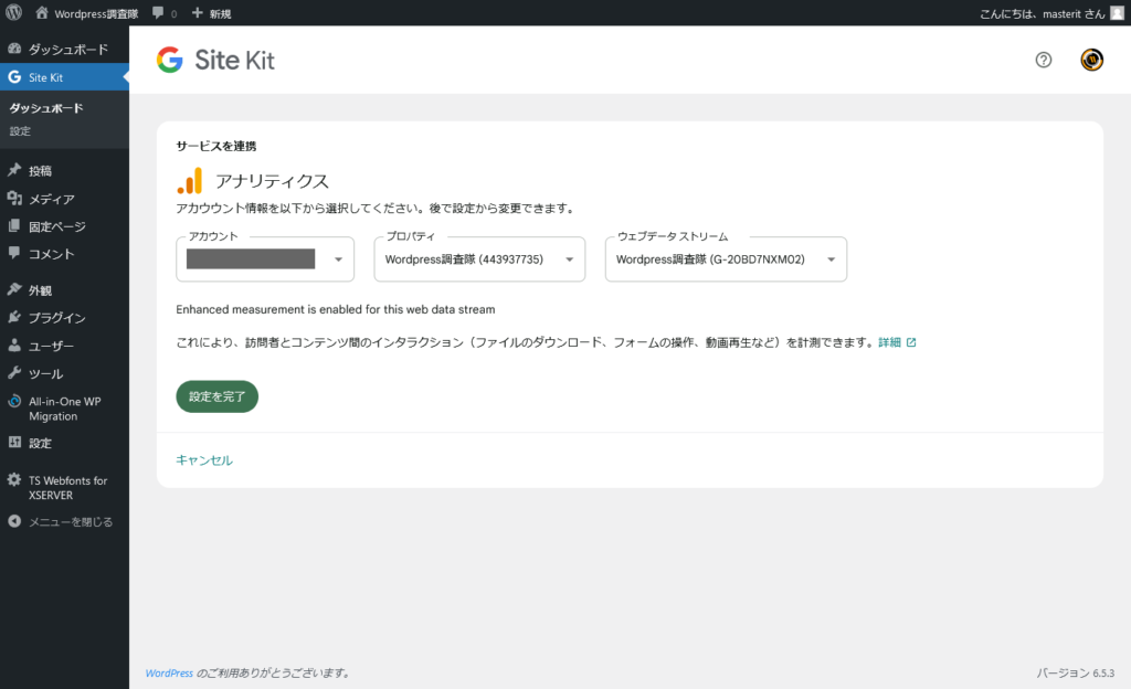 『アナリティクスを設定完了しました』