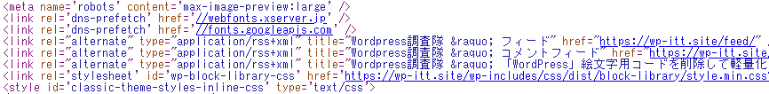 }ブラウザでソースを見てみると、上記のようなスクリプトとスタイルが表示されています。